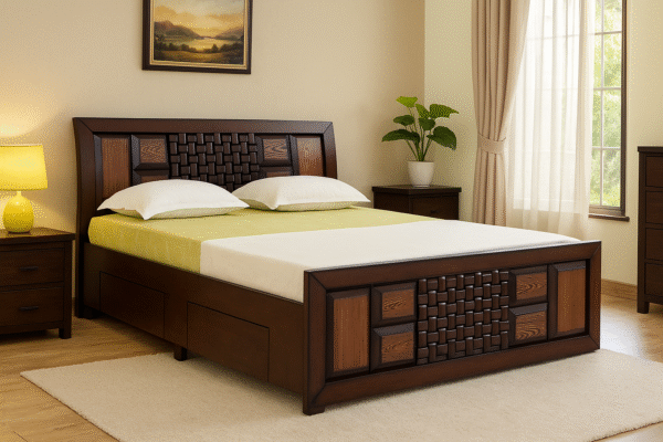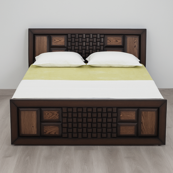 Get an Good Quality Assam Teak Wood Bed/Cot at very Reasonable Price. The Internal Frame , Support and Legs are made of Assam Teak Wood and other parts made of Ply wood and Well Polished. This is not a Sticker type cot/bed. And Its Warranty is 5 Years.